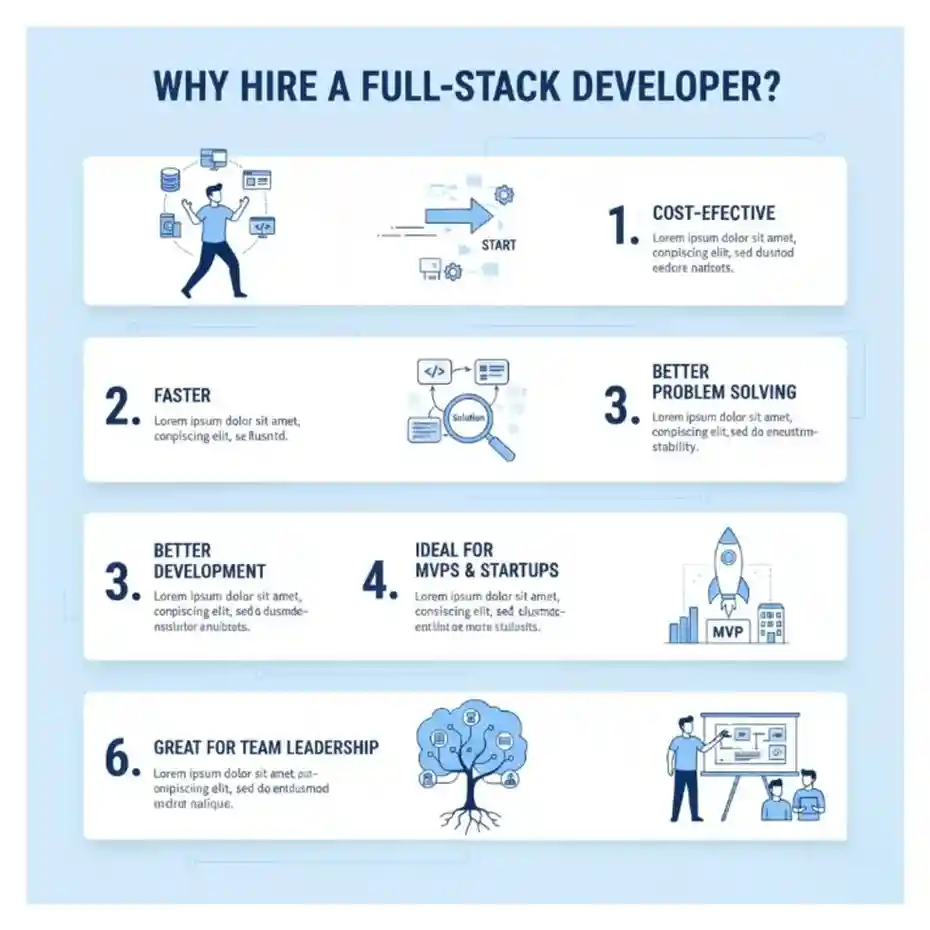Hiring the right full-stack developer can transform your business by ensuring fast development, clean architecture, and long-term scalability. Full-stack developers are flexible, skilled, and ideal for modern software development.